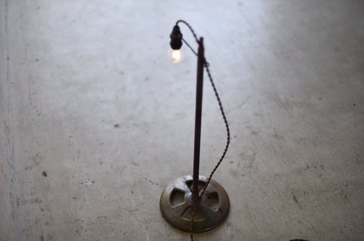 Through long use and the passage of time, the steel developed a naturally smooth, subtly textured surface.It may not shine with a deep black gloss, but its matte finish shows an incredibly beautiful evolution.I truly hope you can experience it in person.The light is available in two height options, with two base variations.The photo shows the taller version.