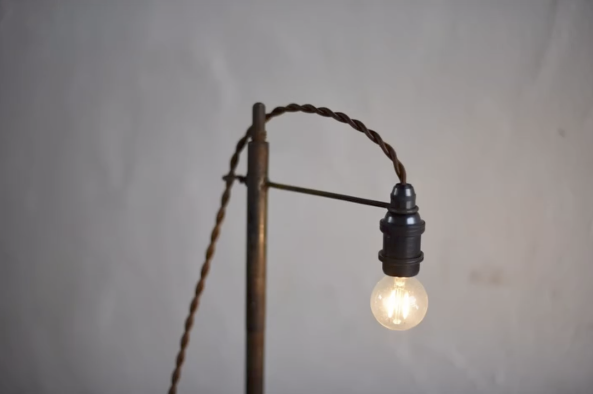 Through long use and the passage of time, the steel developed a naturally smooth, subtly textured surface.It may not shine with a deep black gloss, but its matte finish shows an incredibly beautiful evolution.I truly hope you can experience it in person.The light is available in two height options, with two base variations.The photo shows the taller version.